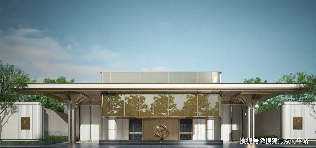 大门不仅是门面,更是豪宅的精神图腾和价值主张。保利天曜约百米华盖顶社区大门,主体层高约9米,石材、铝板、铜门搭配项目专属LOGO八芒星,以鎏金美学彰显尊贵精致老钱风,营造归家第一重仪仗。