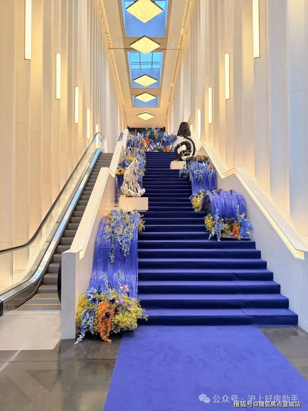 从海派入户旋转门推门而入,看到的是约13-15米的挑高大堂。三层艺术阶梯的进阶之感,层层递进,犹如登山之“径”,气派恢宏。
