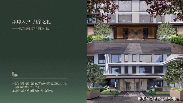 项目设计融合了姑苏书院的人文气息,采用苏式园林手法,打造了一个向往自然山水的低密社区。不论自住还是收藏传承,都值得拥有。社区整体分为南北两个区域,北边是洋房,南边是合院,采用三进礼仪入园设计:一进是礼仪门厅,二进是天地院落,三进是生活雅院,还设有九处融合了诗意东方的园景,营造出东方礼序的归家体验。