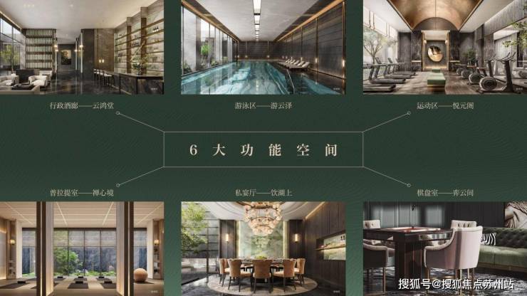 社区公区以私密低密改善生活为理念,打造了1900余平的社区会所空间——鸿湖荟,采用东方雅序的手法融合了六大功能空间:行政酒廊、游泳区、运动区、普拉提室、私宴厅和棋牌室。
