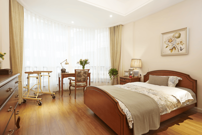 配套极具特色,拥有无障碍百米走廊,方便行动不便长者出行;2000平米室内生态园与3500平米室外果木花园相映成趣,让长者足不出院即可亲近自然、休闲养生。房型选择丰富,涵盖30-60平米的单人间、标准间、多人间及套间,均配备独立卫生间、数字电视、冷暖空调、冰箱、电话、适老家具,可根据长者需求选择高级家居床、高级医疗床或电动床,搭配高档卫浴洁身设备。全园区覆盖24小时消防、安全监控系统与无线紧急呼叫系统,全程无障碍设施与适老化家居配套,从细节处保障长者居住安全。